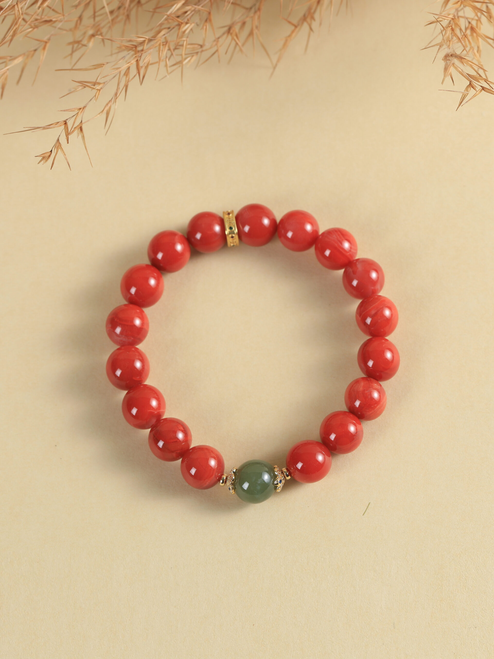 Nanjang Red Agate Round Bead Bracelet, Clearwater Single Bead Design