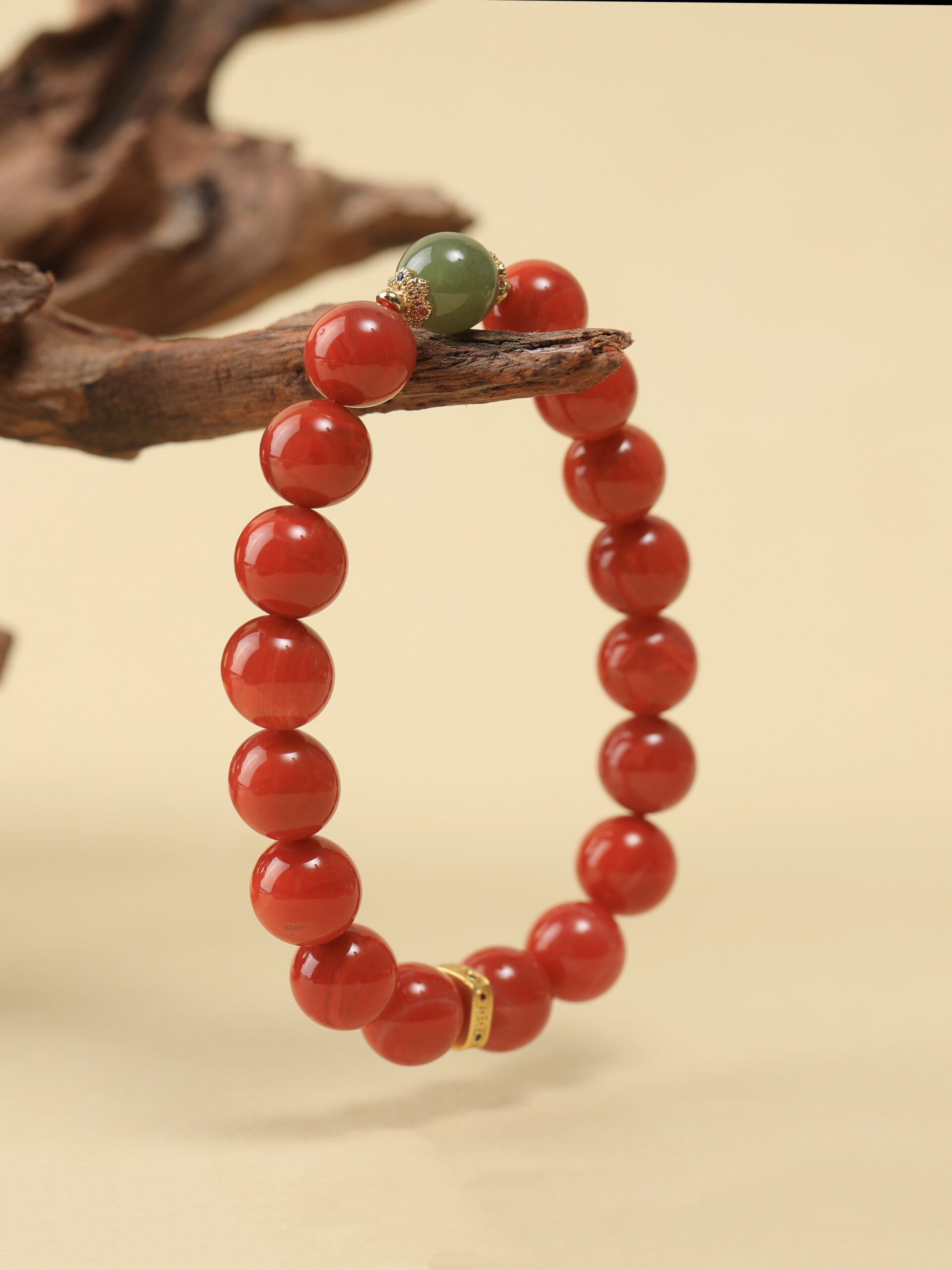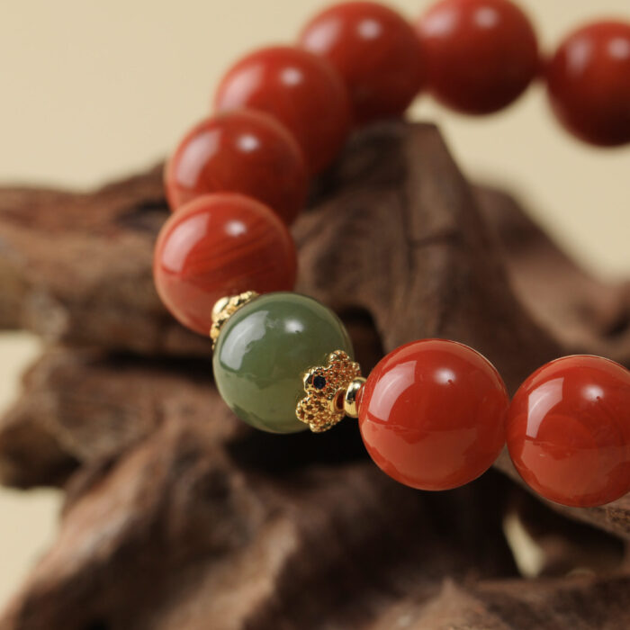 Nanjang Red Agate Round Bead Bracelet, Clearwater Single Bead Design